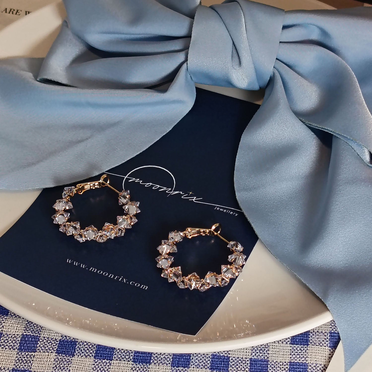 Add a dash of glamour with the Helene Crystal Hoop Earrings, featuring a circle of intricately set crystals that shimmer with every movement. Bold enough to make a statement.