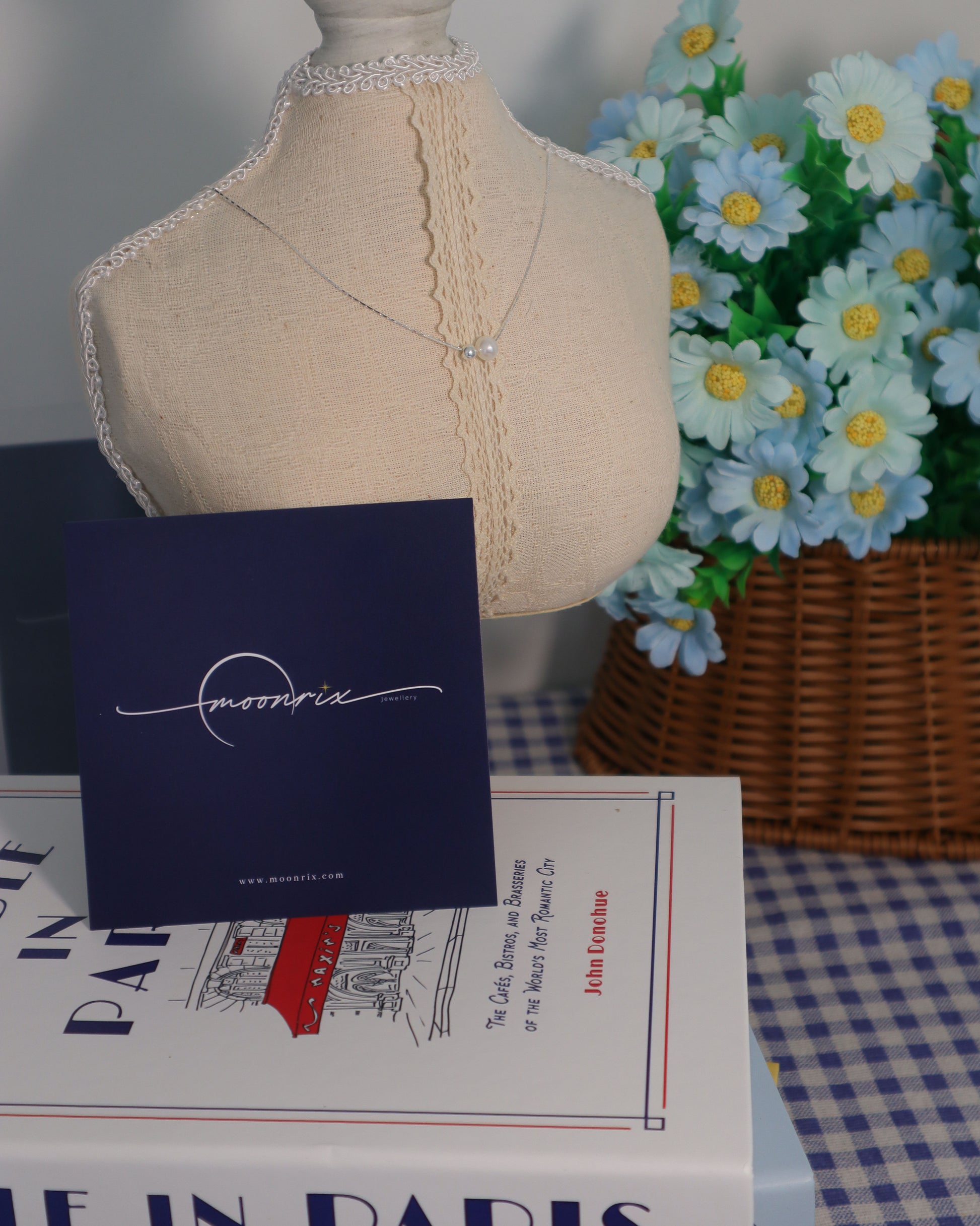 The Lilou Pearl Necklace features a single pearl paired with a silver bead on an invisible thread, light and airy design — giving the illusion of pearls floating gently against your skin.