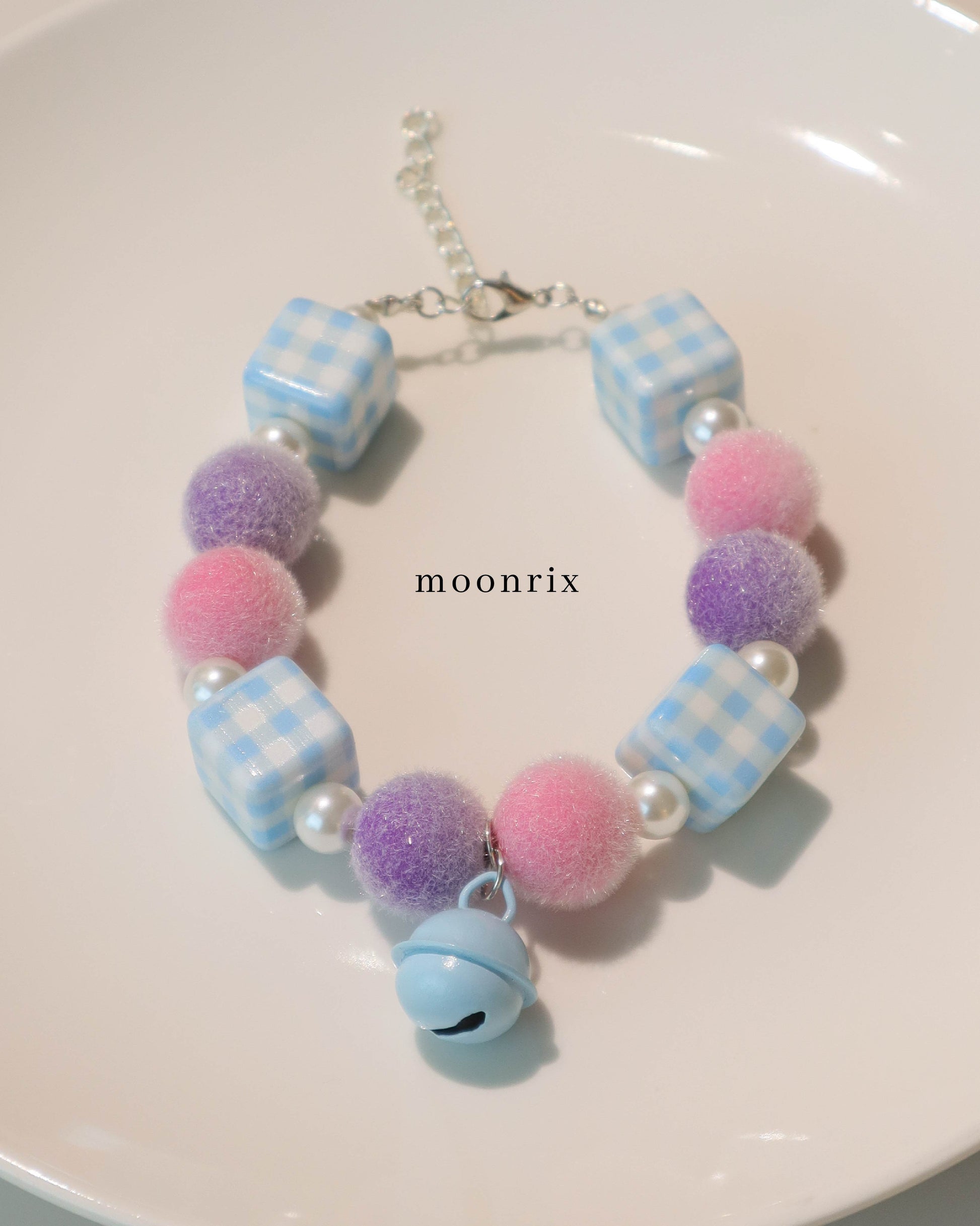 It blends dreamy pastel shades of baby blue, pink, and lilac — just like ais krim keladi on a sunny day 🍦✨. Each bead is soft and playful, giving your furry friend that irresistible comel + manja vibe.