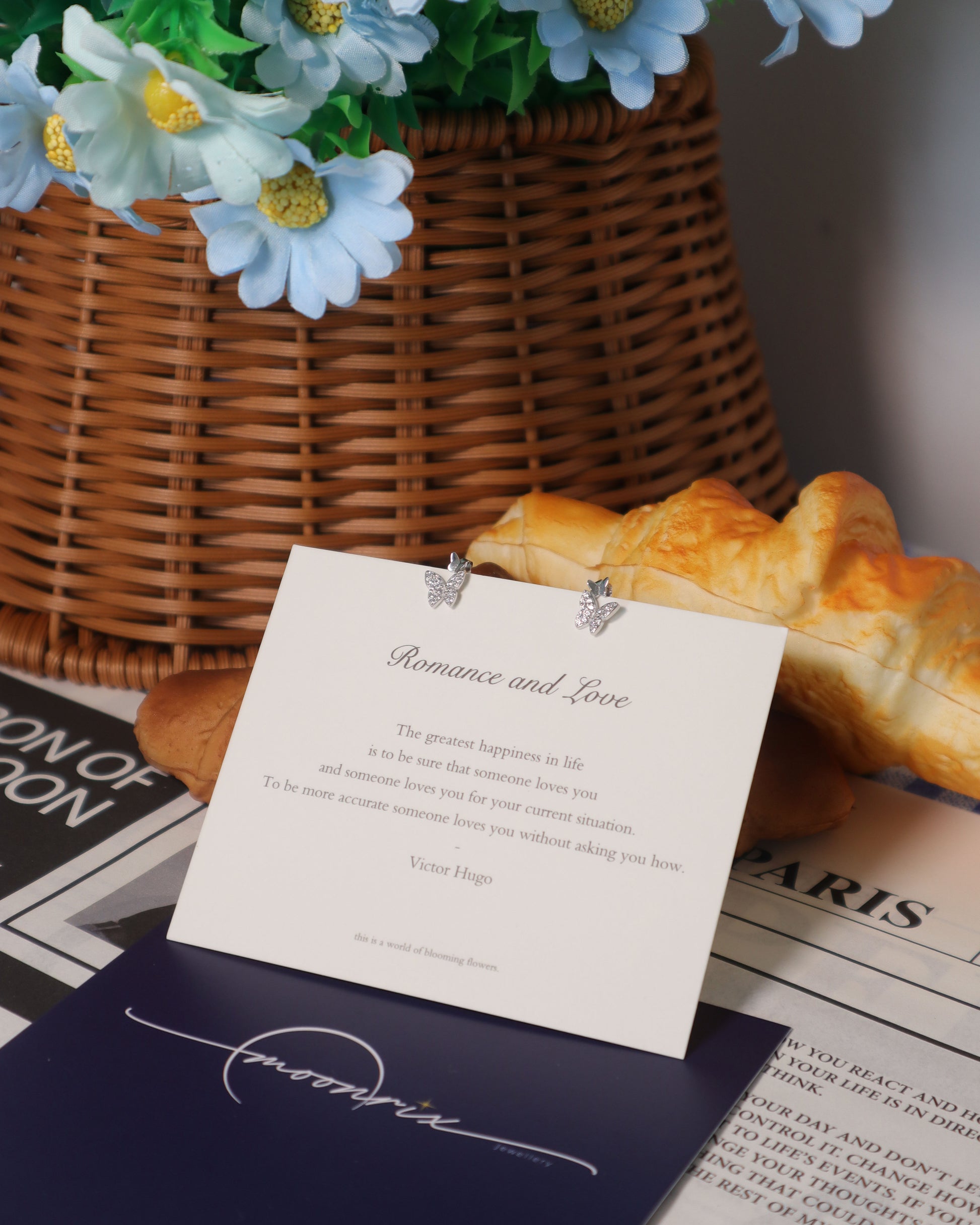 Embrace the essence of romance and love with the exquisite Sylvie Butterfly Zirconia Stud Earrings.