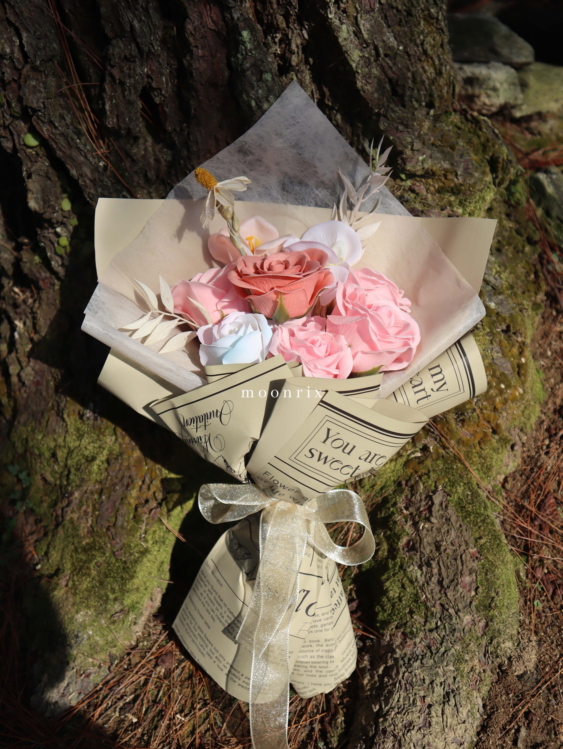Timeless love deserves timeless beauty. With blush and coral roses wrapped in vintage-style paper and adorned with a graceful golden bow, this bouquet captures the charm of romance.